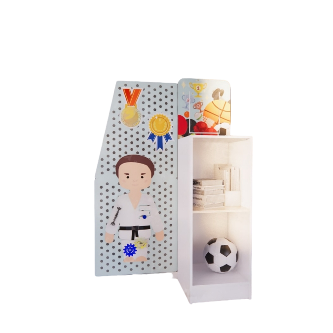 Стеллаж идеально подходит для создания уголка на спортивную тематику: в нем есть место для хранения документов, книг, игрушек и пособий, а на перфорированном стенде можно разместить методические материалы, фотографии и другую информацию. Кроме того, при помощи стенда можно вызывать у детей интерес к спорту и воспитать здоровый дух соперничества.