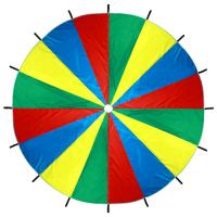 Парашют состоит из шестнадцати секторов четырёх разных цветов, имеет диаметр 5 метров, - подойдёт для большой компании детей.
