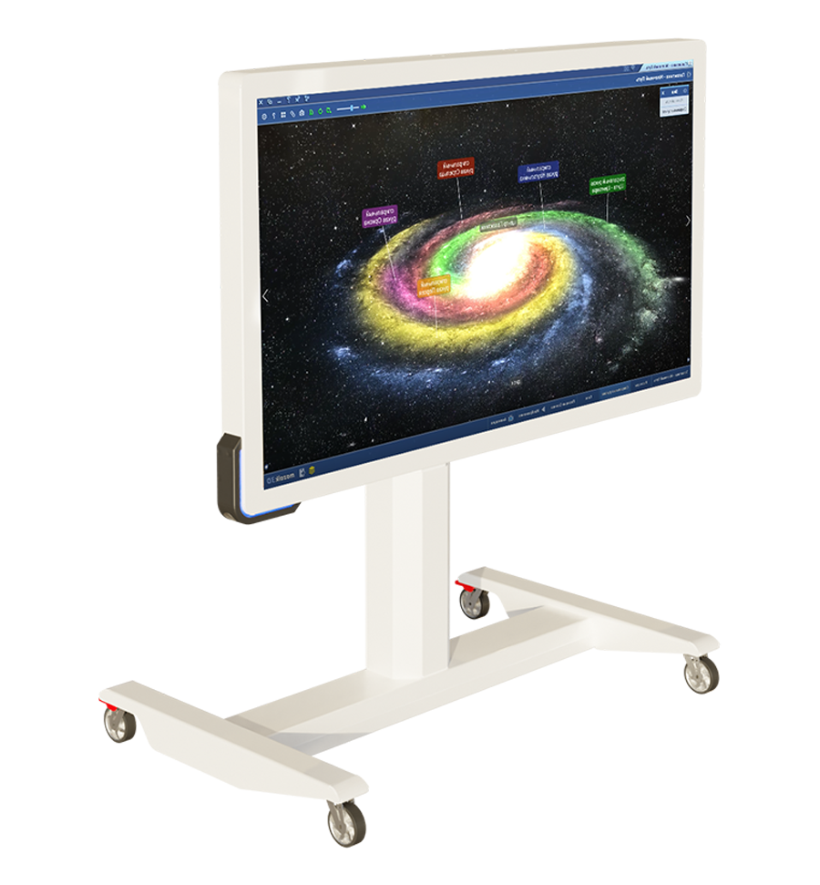 Многофункциональный трансформер 2 в 1 (панель и стол), оснащен передвижной стойкой на колесах, при желании панель можно закрепить на стене.