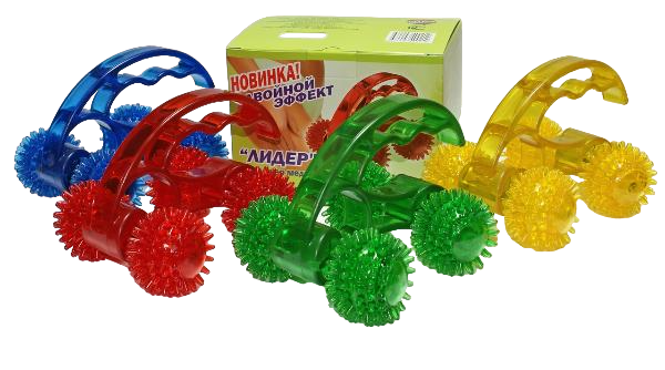 Массажер на четырех колесиках с ручкой очень удобный и легкий в использовании. Даже ребенок сможет прокатить его «туда-сюда», совершая тем самым простой, но не менее полезный массаж любого участка тела.