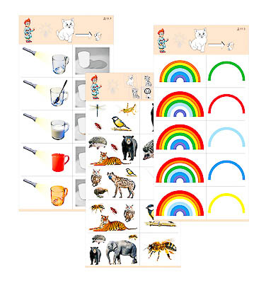 Пособие состоит из 10 полноцветных, напечатанных на картоне и ламинированных пленкой карточек. Является частью игрового набора "Обучающий калейдоскоп для дошкольного образования".