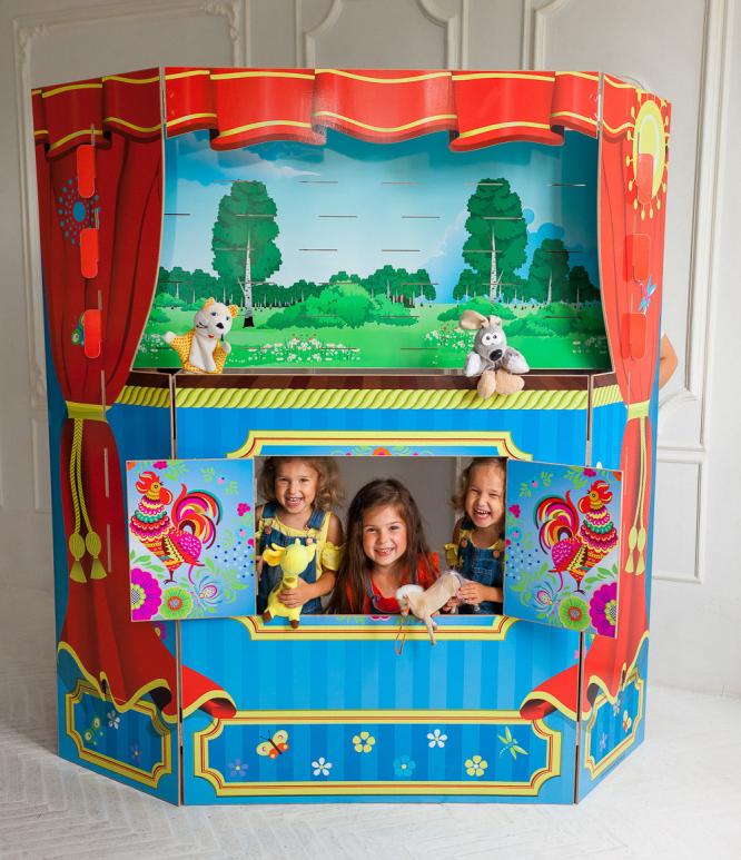 Напольный кукольный театр для детского сада идеально подходит для показа представлений взрослыми и детьми, за счет двух удобных окон. Ширма для кукольного театра оснащена экраном "Лето", за которым не будет видно актера, а сам актер сможет наблюдать как за своими куклами, так и за реакцией зрителей через отверстия в экране. Высота ширмы для кукольных представлений 1,8м, ширина 1м, что позволяет комфортно разместиться за ней двум актерам. Напольный кукольный театр мобильный, он легко складывается, при хранении занимает мало места. Ширма для кукольного театра нашего собственного производства уникальна, и купить её по лучшей цене Вы можете в нашем интернет магазине. Мы доставим его в любую точку России с помощью транспортных компаний, до Ваших дверей или до терминала. В дополнение к кукольному театру Вы можете приобрести дополнительные сменные двухсторонние экраны на различные тематики (зима, осень, весна, деревня)